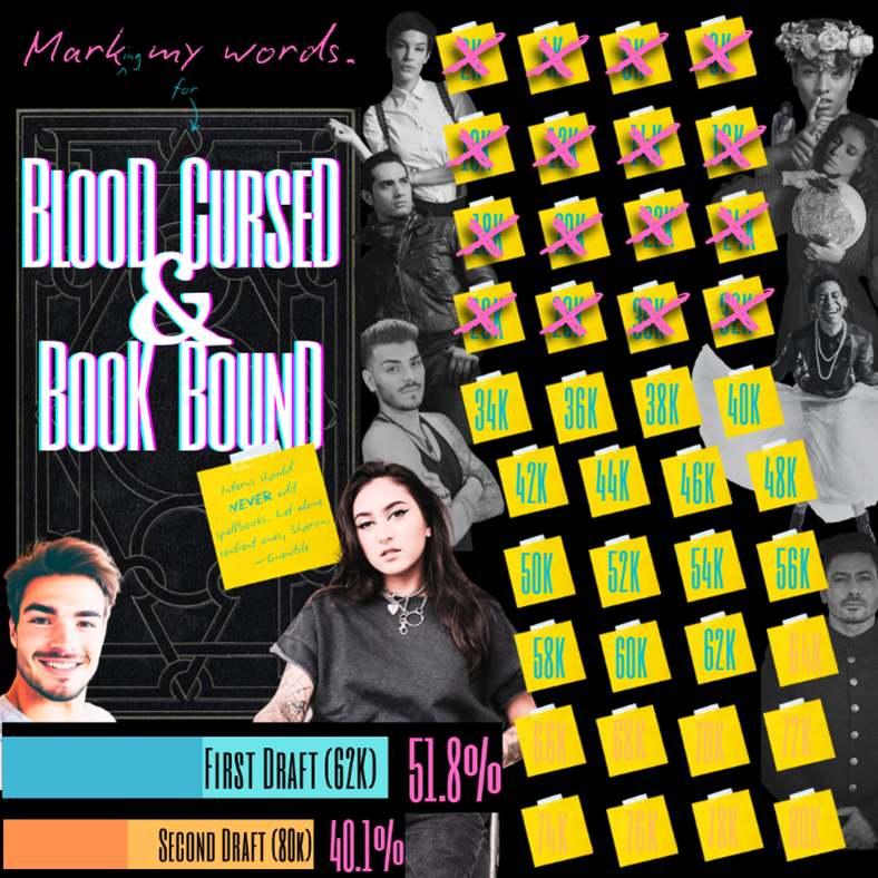 That’s all I have for you at the moment. As you can see below, I am halfway through draft one. And although it isn’t a ton of progress, and it is stalling the next episodes of POOF, I’m still getting words on the page as promised. Considering that my body decided being upright is the devil incarnate for the last three months, it’s not too shabby.