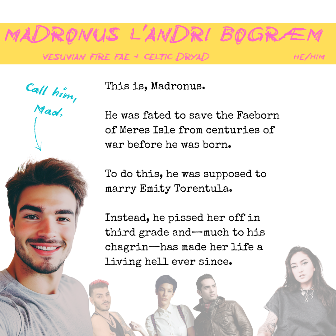 Two fated faeborn are foretold to bring peace to the realm. Public pressure to fulfil the prophecy ends with them cursing each other as kids. They hate each other, are forced to work together as new graduates, and have to fake date…or something bad will happen.