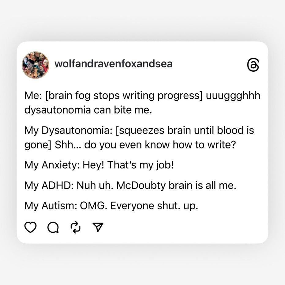 That’s right folx, I got me a fancy new POTS diagnosis. Likely have had mild POTS since I got a bad case of chicken pox as a kid (based on my medical history) and then it took a steep turn for the worse in college when I was hospitalized for Mono. But those are stories for another time.
