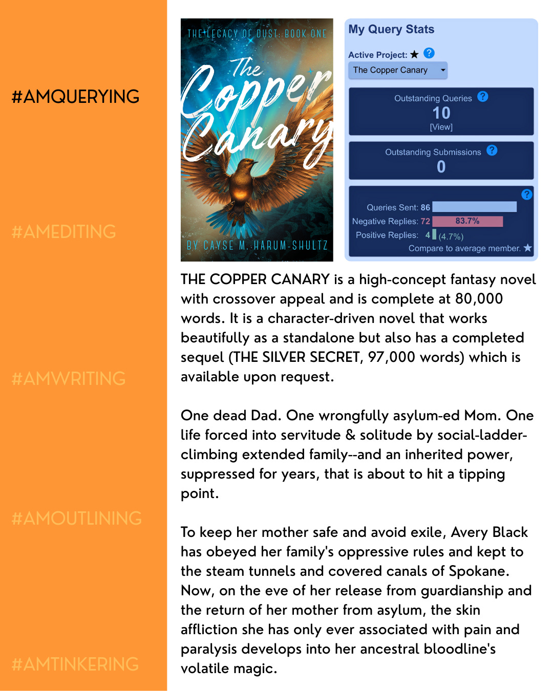 Here’s a quick reminder of what Canary is via my QueryTracker stats and the last query letter copy I used.